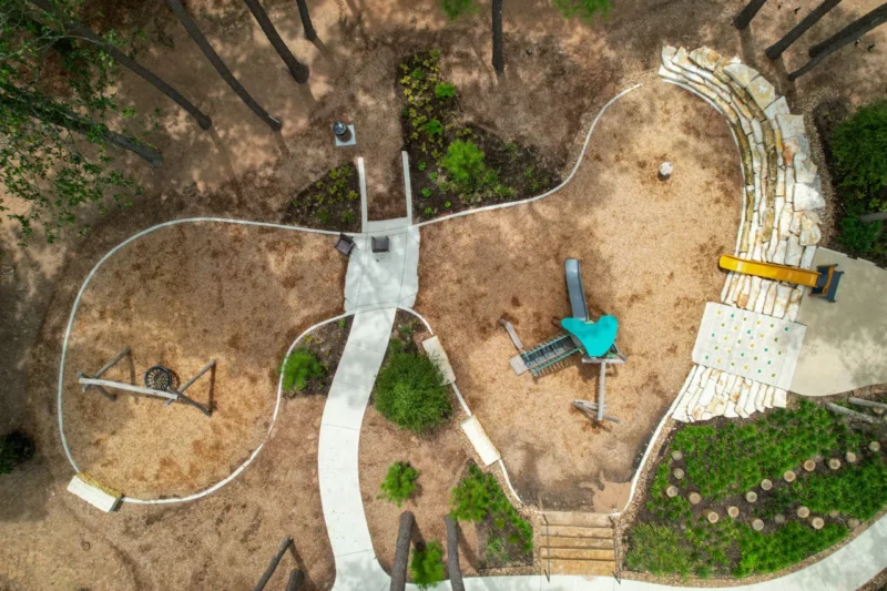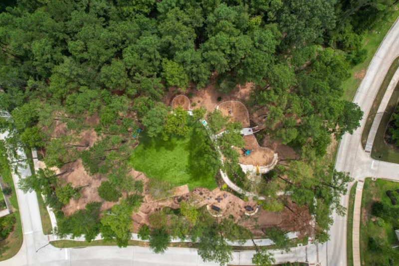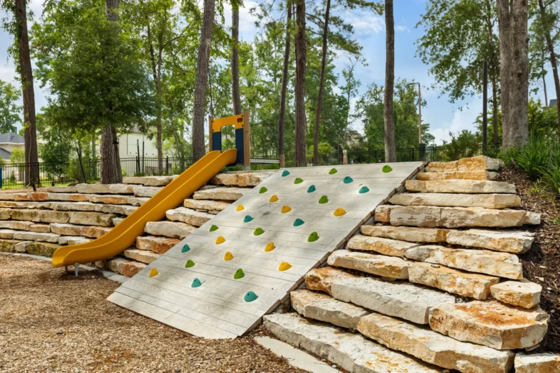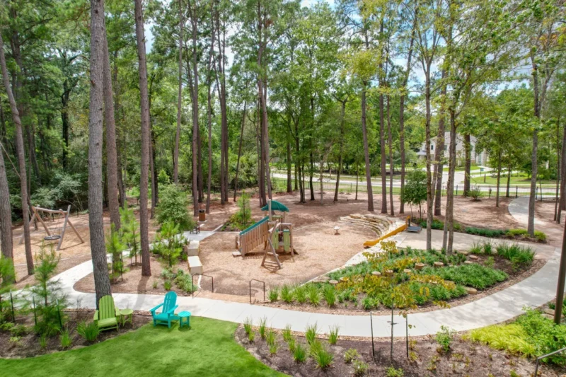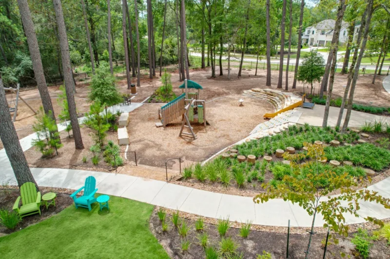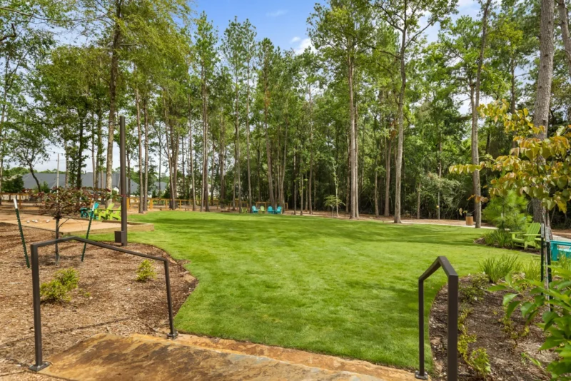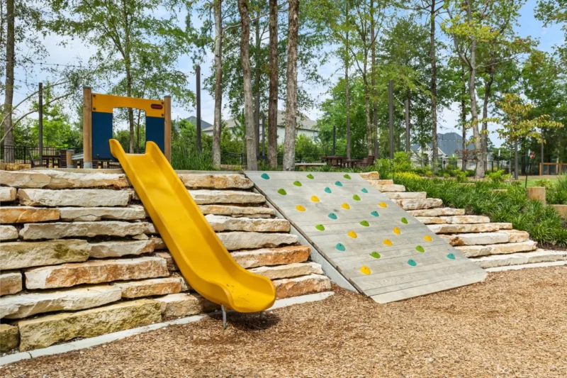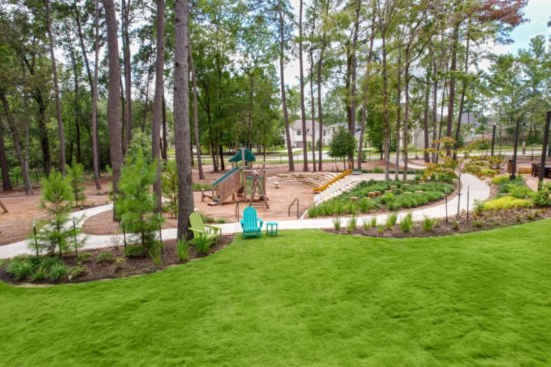 Bronze Trace Park in Woodforest is a charming neighborhood retreat that offers a harmonious blend of natural beauty and recreational amenities. This park features a well-designed playground, a family bistro area with dining room size tables, an well lit activity area with corn hole and bocce ball and open green spaces for all to play. Winding walking paths offer scenic routes for leisurely strolls or brisk walks, making Bronze Trace Park a beloved spot for residents seeking to unwind and enjoy the outdoors in a family-friendly environment.